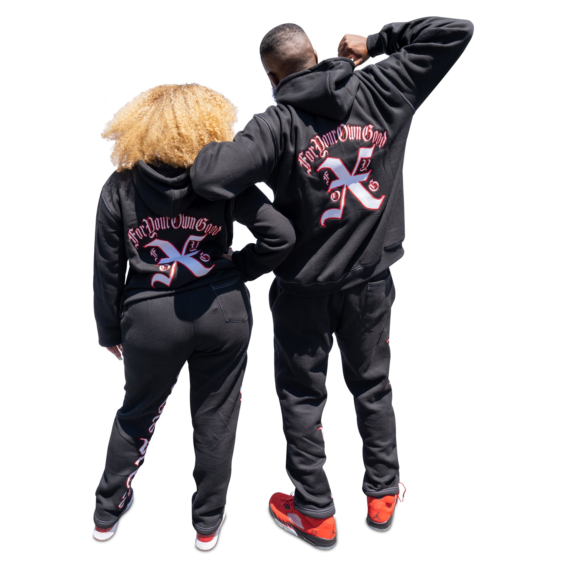 - Contrasting FORYOUROWNGOOD & Do Gr8, Do Gr8 left & right of joggers