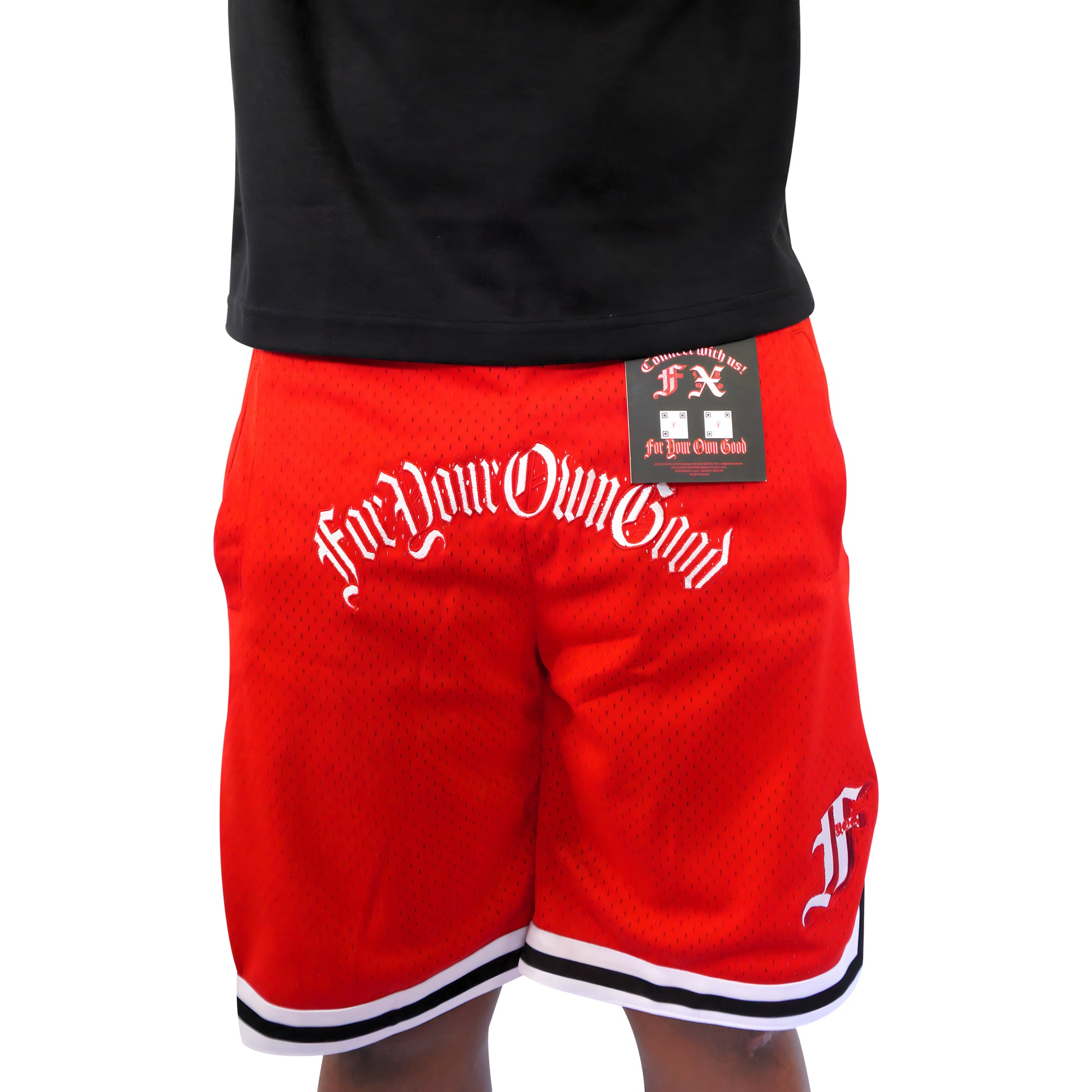 - Stitched/Embroidered FORYOUROWNGOODΒ over lap of shorts