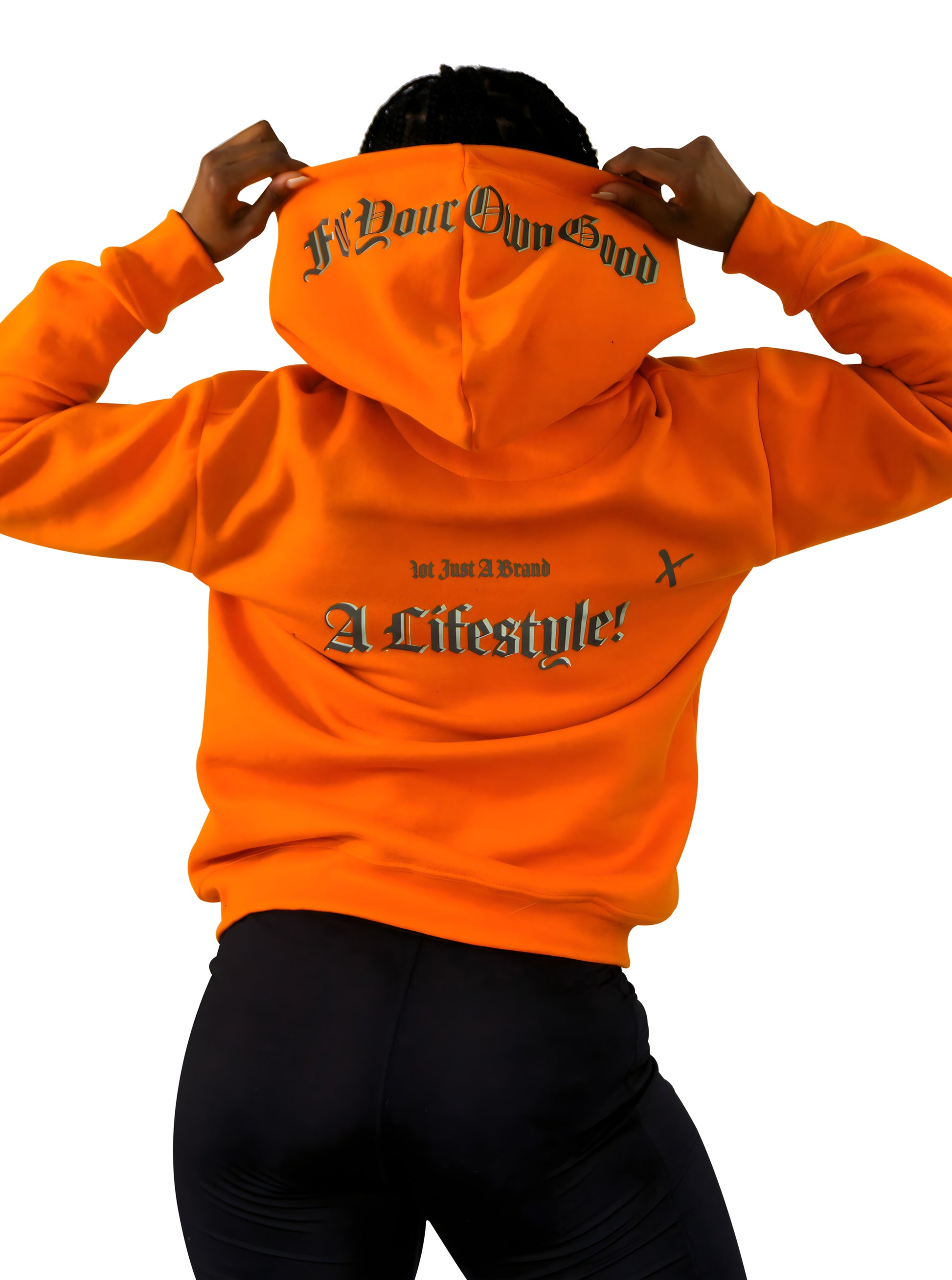 - Long sleeve CottonΒ hoodie in OrangeΒ featuring FYOG abbr. X logoΒ printed in 3M on chest