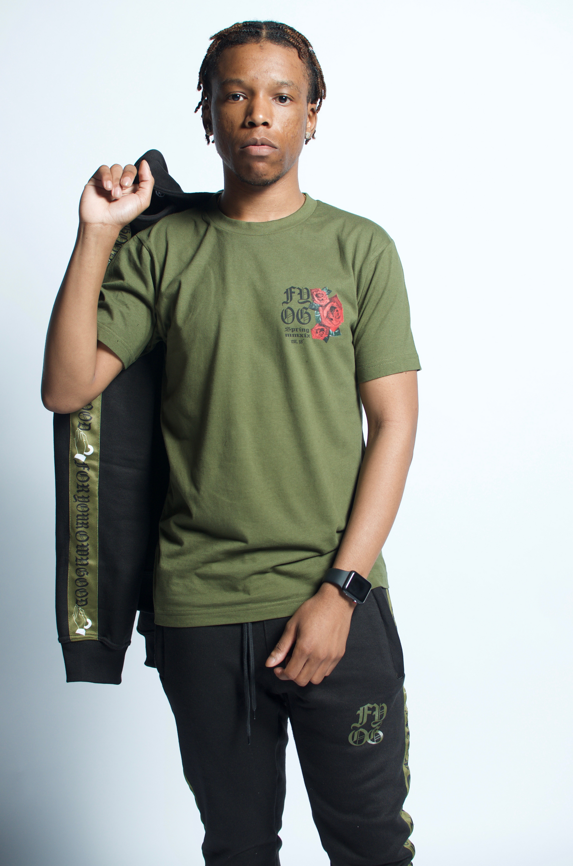 - PrintedΒ FYOG abbr. with Rose design on front of teeΒ